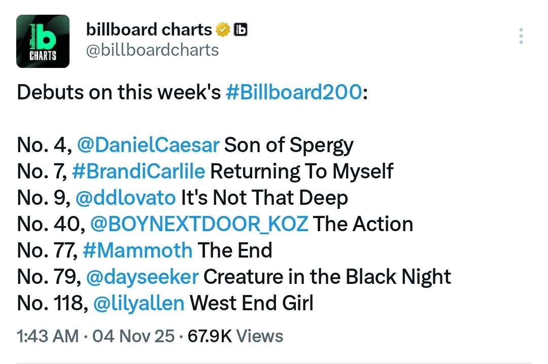 Pencapaian ini melampaui posisi album sebelumnya 'No Genre' yang berada di posisi No. 62—naik 22 peringkat sekaligus. BOYNEXTDOOR kini menjadi satu-satunya grup K-pop yang debut di periode yang sama mampu mencatatkan rekor 5 album berturut-turut masuk Billboard 200.