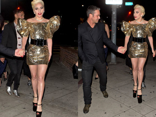 Dalam pesta tersebut, Lady Gaga pun terlihat tampil unik dan nyentrik dengan dress yang dikenakannya. Tunangan Taylor Kinney ini terlihat tampil dengan mengenakan mini dress bergaya 80-an, yang penuh dengan detail sparkly berwarna emas dengan ikat pinggang besar, yang merupakan koleksi dari rumah mode Saint Laurent.