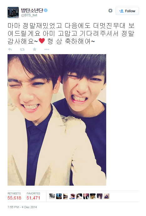 Postingan yang memperlihatkan dua idola K-Pop dari grup yang sama-sama sedang digandrungi ini pun memecahkan rekor dengan mendapatkan 55.618 retweet dan 51.471 favorit. Rekor ini tentunya dipengaruhi oleh fans yang senang dengan dua idola K-Pop yang kerap dibilang kembar ini serta melihat keduanya akrab satu sama lain.
