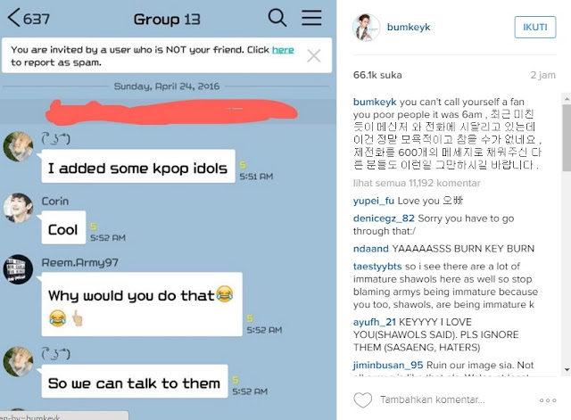 Selain itu, dalam obrolan tersebut, seorang penggemar mengatakan “Aku menambahkan beberapa idola K-Pop. Jadi kita bisa berbicara dengan mereka." Alhasil, Key yang melihat obrolan penggemar itu lantas marah dengan ucapannya.