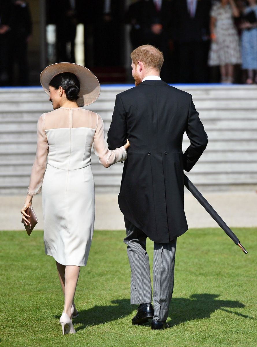 Telah menyandang titel Duchess, kini penampilannya sudah hampir sama dengan gaya khas kakak iparnya, Kate Middleton. Meghan tampil dengan dress pink selutut, mengenakan bawahan pantyhose dan fascinator atau topi khas Inggris. Tatanan rambutnya pun masih ala bun namun lebih rapih.