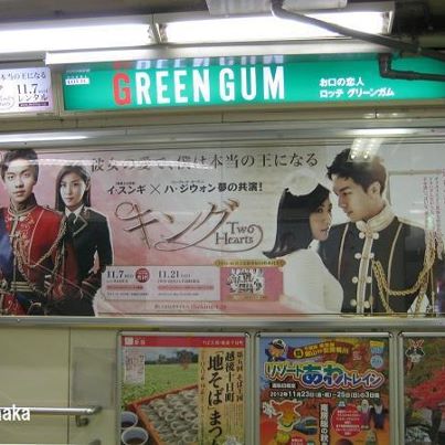 Poster dari drama populer Korea, The King 2 Hearts, telah mewarnai pemandangan di Shin-Okubo Tokyo, Jepang.