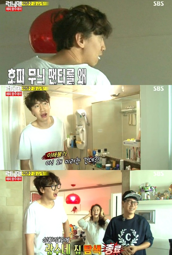 Dikunjungi member lainnya secara tiba-tiba, Lee Kwang Soo pun tak bisa menyembunyikan ekspresi wajahnya yang begitu terkejut. Tak hanya itu, Yoo Jae Suk, HaHa, Gary, Kim Jong Kook, Ji Hyo, dan Ji Suk Jin pun menggeledah isi rumah yang sukses membuat Lee Kwang Soo stres!