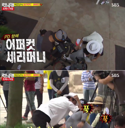 Semua orang yang ada dilokasi, termasuk tim produksi ‘Running Man’ langsung menertawakan kejadian tersebut, dan Lee Kwang Soo yang kesal akhirnya mendatangi salah satu produser acara tersebut lalu memukulnya.