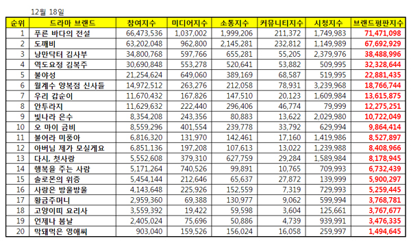 Baru-baru ini, Korean Business Research Institute (KBRI) merilis data drama brand reputation index di bulan Desember. Drama ‘Legend of the Blue Sea’ pun berada di peringkat pertama mengungguli 19 drama lainnya yang ada dalam daftar.