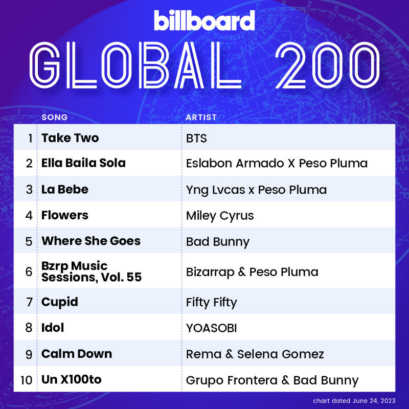 Menambah pencapaian itu, Billboard kemudian mengumumkan bahwa ‘Take Two’ debut di posisi No. 48 dalam chart Hot 100. BTS sekarang telah muncul di Hot 100 dalam 7 tahun terakhir, sejak 'DNA' (2017-2023).